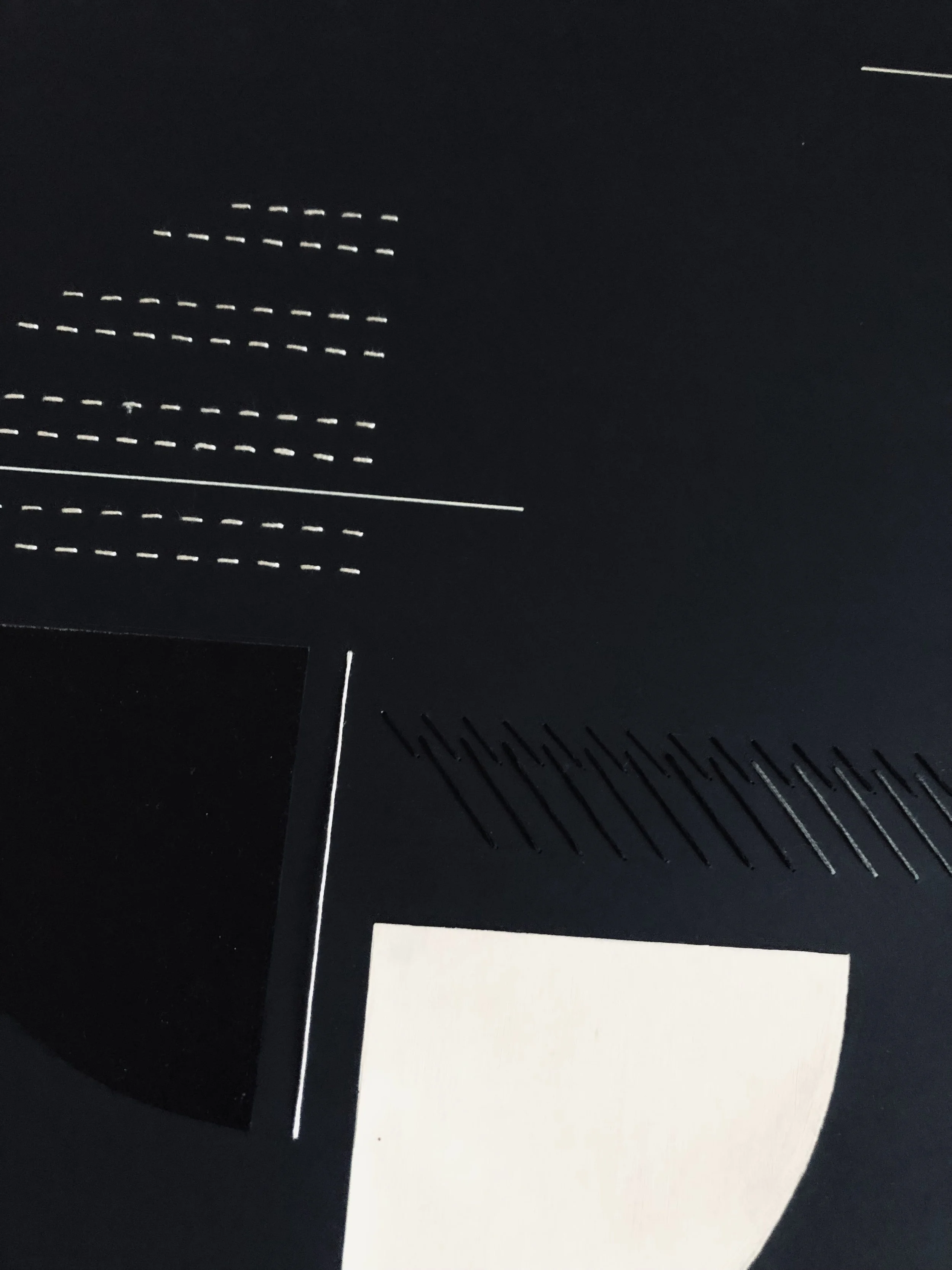 Gouache, vernis et broderie sur papier Black Black de Fabriano format 42X59,4cm. Travailler sur un papier de couleur invite à mettre en relation le dessin et son support.