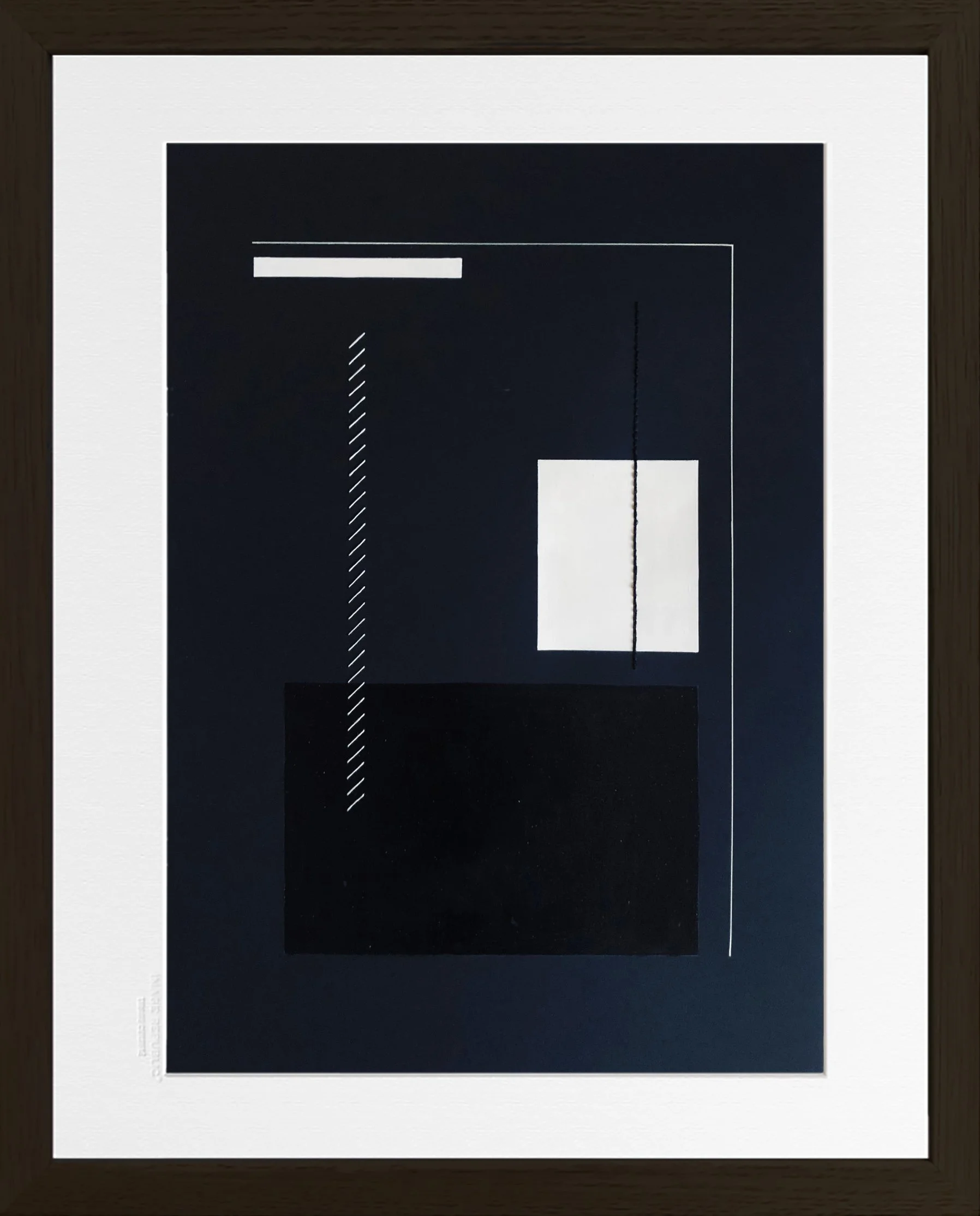 Les fils de broderie évoquent des liens, des chemins ; les éléments géométriques viennent stabiliser ou troubler le rythme de ces lignes. Une poésie visuelle qui peut nous conter tant d'histoires sans embarrasser l'imaginaire avec des mots.